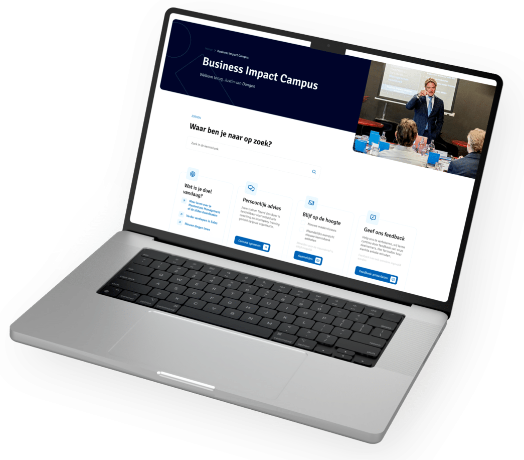 Speciaal voor (oud-)deelnemers: de Business Impact Campus. Een leeromgeving met content, tools, netwerkevents en verdieping. Koppel deze aan je eerdere trajecten voor maximale leeropbrengst.